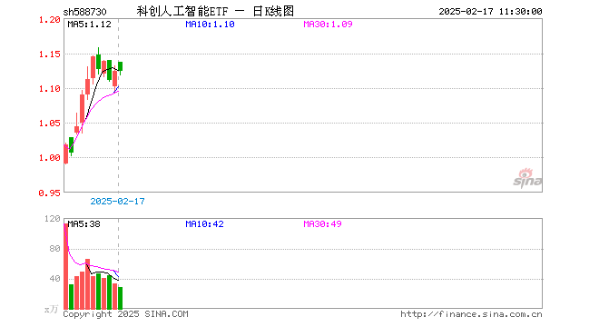 2月17日,截止午间收盘,科创人工智能ETF(588730)涨0.00%,报1.124元,成交额3271.73万元。科创人工智能ETF(588730)重仓股方面,寒武纪截止午盘涨3.92%,石头科技跌1.41%,澜起科技涨1.06%,金山办公跌1.67%,晶晨股份涨0.06%,恒玄科技跌1.86%,芯原股份跌1.71%,乐鑫科技涨1.44%,中科星图跌1.31%,复旦微电涨0.22%。