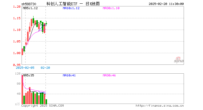 2月20日,截止午间收盘,科创人工智能ETF(588730)跌0.44%,报1.122元,成交额1922.14万元。科创人工智能ETF(588730)重仓股方面,寒武纪截止午盘跌2.35%,石头科技涨1.33%,澜起科技跌1.81%,金山办公跌1.12%,晶晨股份跌0.04%,恒玄科技涨2.09%,芯原股份涨0.65%,乐鑫科技涨0.05%,中科星图跌2.10%,复旦微电跌1.84%。