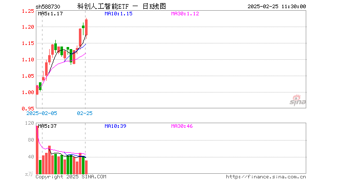 2月25日,截止午间收盘,科创人工智能ETF(588730)涨2.26%,报1.221元,成交额3621.96万元。科创人工智能ETF(588730)重仓股方面,寒武纪截止午盘涨4.21%,石头科技跌0.77%,澜起科技涨5.20%,金山办公跌1.01%,晶晨股份涨4.28%,恒玄科技涨3.87%,芯原股份跌1.27%,乐鑫科技涨1.47%,中科星图涨1.66%,复旦微电跌0.82%。