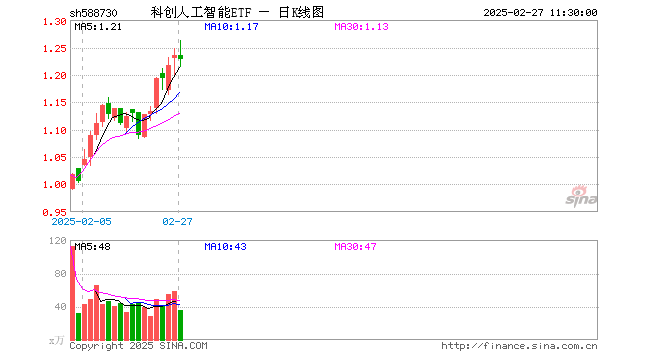 科创人工智能ETF(588730)业绩比较基准为上证科创板人工智能指数收益率,管理人为易方达基金管理有限公司,基金经理为刘文魁,成立(2025-01-16)以来回报为23.41%,近一个月回报为20.72%。