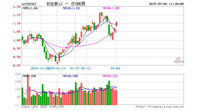 3月6日,截止午间收盘,创业板人工智能ETF华宝(159363)涨3.55%,报1.107元,成交额1.65亿元。创业板人工智能ETF华宝(159363)重仓股方面,中际旭创截止午盘涨0.43%,新易盛涨0.70%,软通动力涨3.90%,润泽科技涨0.83%,天孚通信跌0.09%,景嘉微涨2.00%,网宿科技涨3.41%,中科创达涨3.16%,光环新网涨4.26%,北京君正跌1.40%。