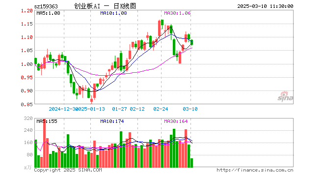 3月10日,截止午间收盘,创业板人工智能ETF华宝(159363)跌1.74%,报1.070元,成交额5966.03万元。创业板人工智能ETF华宝(159363)重仓股方面,中际旭创截止午盘跌0.91%,新易盛涨0.37%,软通动力跌0.27%,润泽科技跌1.49%,天孚通信涨0.57%,景嘉微跌1.12%,网宿科技跌5.37%,中科创达跌1.90%,光环新网跌2.46%,北京君正跌1.98%。