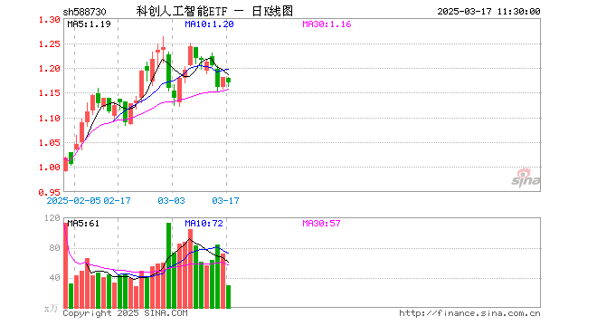 3月17日,截止午间收盘,科创人工智能ETF(588730)跌0.93%,报1.170元,成交额3408.43万元。科创人工智能ETF(588730)重仓股方面,寒武纪截止午盘跌1.45%,石头科技涨0.73%,澜起科技跌1.13%,金山办公跌1.70%,晶晨股份涨0.49%,恒玄科技跌0.62%,芯原股份涨1.85%,乐鑫科技跌3.56%,中科星图跌0.70%,复旦微电跌2.36%。