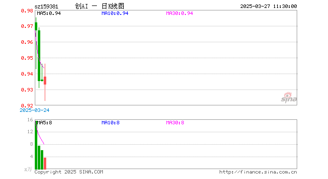 3月27日,截止午间收盘,创业板人工智能ETF华夏(159381)涨0.32%,报0.938元,成交额340.22万元。创业板人工智能ETF华夏(159381)重仓股方面,新易盛截止午盘跌2.03%,中际旭创跌1.34%,软通动力涨0.52%,润泽科技跌0.72%,天孚通信跌2.05%,网宿科技涨0.92%,光环新网涨0.90%,全志科技涨2.64%,深信服涨5.24%,北京君正涨1.39%。