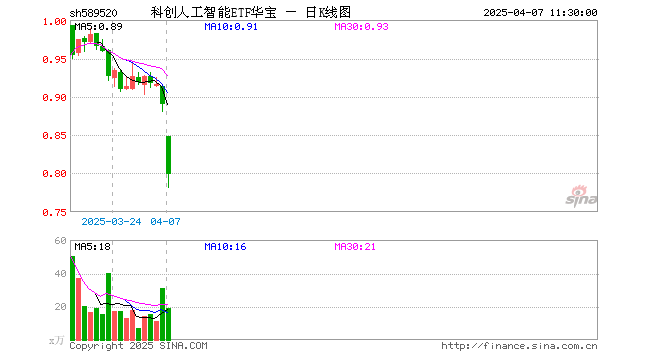 4月7日,截止午间收盘,科创人工智能ETF华宝(589520)跌10.22%,报0.799元,成交额1554.98万元。科创人工智能ETF华宝(589520)重仓股方面,寒武纪截止午盘跌8.94%,金山办公跌4.58%,澜起科技跌9.72%,石头科技跌14.14%,芯原股份跌7.67%,晶晨股份跌10.73%,恒玄科技跌8.87%,云天励飞跌13.61%,云从科技跌15.61%,乐鑫科技跌12.07%。