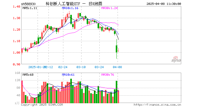 4月8日,截止午间收盘,科创板人工智能ETF(588930)涨1.10%,报1.012元,成交额6632.91万元。科创板人工智能ETF(588930)重仓股方面,寒武纪截止午盘涨1.53%,石头科技跌1.81%,澜起科技跌0.60%,金山办公涨1.67%,恒玄科技跌2.31%,晶晨股份涨1.31%,芯原股份涨0.35%,乐鑫科技涨2.72%,中科星图涨3.98%,复旦微电涨3.21%。