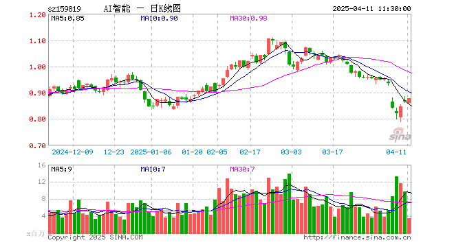 4月11日,截止午间收盘,人工智能ETF(159819)涨1.62%,报0.879元,成交额3.05亿元。人工智能ETF(159819)重仓股方面,寒武纪截止午盘涨2.47%,海康威视跌1.35%,中际旭创跌0.77%,中科曙光涨0.75%,科大讯飞涨0.32%,韦尔股份涨4.18%,新易盛跌1.13%,澜起科技涨7.17%,金山办公涨0.95%,紫光股份跌0.16%。
