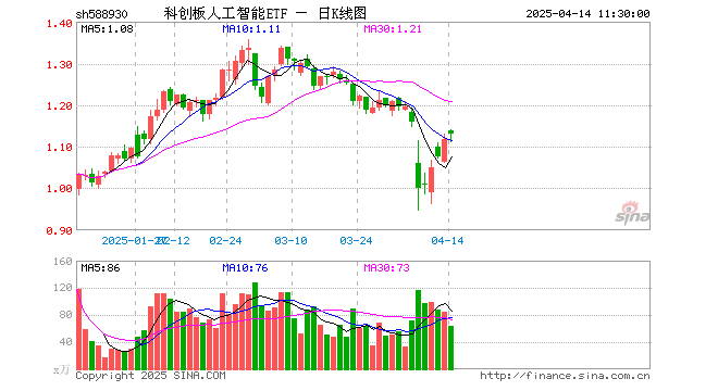 4月14日,截止午间收盘,科创板人工智能ETF(588930)涨1.16%,报1.130元,成交额7140.77万元。科创板人工智能ETF(588930)重仓股方面,寒武纪截止午盘涨4.90%,石头科技跌0.03%,澜起科技涨0.01%,金山办公跌0.66%,恒玄科技跌0.06%,晶晨股份跌0.72%,芯原股份涨8.15%,乐鑫科技跌0.22%,中科星图跌0.88%,复旦微电跌2.27%。