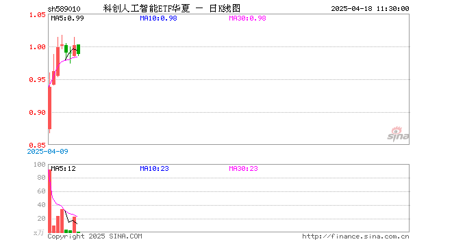 4月18日,截止午间收盘,科创人工智能ETF华夏(589010)跌1.40%,报0.988元,成交额88.66万元。科创人工智能ETF华夏(589010)重仓股方面,澜起科技截止午盘涨0.03%,石头科技跌1.76%,金山办公跌1.32%,寒武纪跌1.68%,芯原股份跌5.73%,恒玄科技跌0.15%,晶晨股份跌3.21%,乐鑫科技跌1.62%,复旦微电跌2.49%,中科星图跌1.02%。