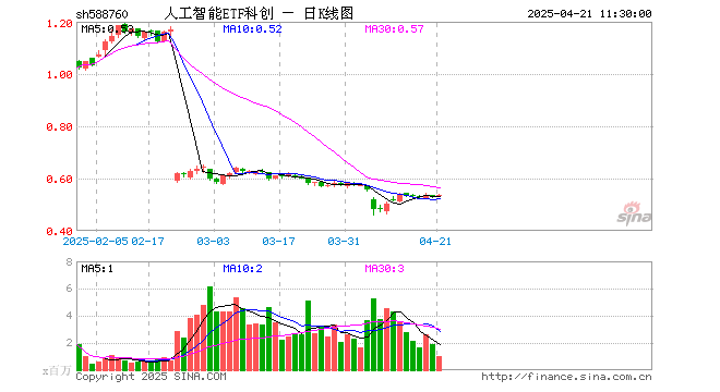 4月21日,截止午间收盘,人工智能ETF科创(588760)涨0.75%,报0.536元,成交额5241.64万元。人工智能ETF科创(588760)重仓股方面,寒武纪截止午盘涨5.68%,石头科技涨1.34%,澜起科技涨0.66%,金山办公涨0.90%,晶晨股份跌0.51%,恒玄科技跌3.03%,芯原股份跌1.96%,乐鑫科技跌1.23%,中科星图涨1.49%,云天励飞涨4.10%。