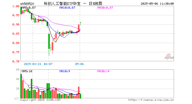 5月6日,截止午间收盘,科创人工智能ETF华宝(589520)涨1.11%,报0.908元,成交额724.16万元。科创人工智能ETF华宝(589520)重仓股方面,澜起科技截止午盘涨2.72%,芯原股份跌4.52%,金山办公涨5.51%,石头科技涨2.14%,寒武纪跌0.37%,恒玄科技跌0.80%,晶晨股份涨1.43%,乐鑫科技涨1.72%,中科星图涨1.79%,复旦微电涨2.07%。