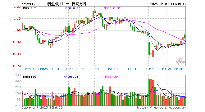 5月7日,截止午间收盘,创业板人工智能ETF华宝(159363)跌0.74%,报0.934元,成交额1.07亿元。创业板人工智能ETF华宝(159363)重仓股方面,新易盛截止午盘跌0.34%,中际旭创跌0.42%,软通动力跌1.51%,润泽科技跌4.18%,天孚通信跌0.81%,深信服跌3.08%,网宿科技跌0.08%,全志科技跌0.41%,光环新网跌1.52%,北京君正跌1.10%。