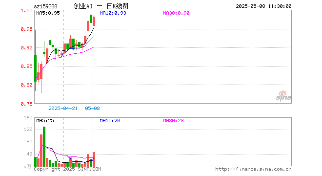 5月8日,截止午间收盘,创业板人工智能ETF国泰(159388)涨1.76%,报0.981元,成交额4518.78万元。创业板人工智能ETF国泰(159388)重仓股方面,新易盛截止午盘涨10.10%,中际旭创涨8.60%,软通动力跌2.22%,润泽科技涨0.25%,天孚通信涨6.05%,网宿科技跌0.08%,深信服跌0.41%,全志科技涨0.17%,光环新网涨0.54%,北京君正涨0.65%。