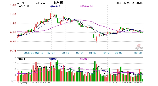 5月28日,截止午间收盘,人工智能ETF(159819)涨0.11%,报0.896元,成交额1.44亿元。人工智能ETF(159819)重仓股方面,寒武纪截止午盘涨0.93%,海康威视涨0.11%,韦尔股份跌0.33%,澜起科技涨0.34%,中际旭创涨2.62%,科大讯飞跌0.55%,新易盛涨6.08%,金山办公跌0.38%,紫光股份跌0.54%。