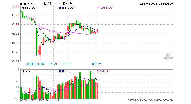 5月29日,截止午间收盘,创业板人工智能ETF华夏(159381)涨1.64%,报0.869元,成交额1851.78万元。创业板人工智能ETF华夏(159381)重仓股方面,新易盛截止午盘涨2.56%,中际旭创涨2.11%,软通动力涨1.88%,润泽科技涨1.05%,天孚通信涨1.92%,网宿科技涨1.92%,光环新网涨1.36%,全志科技涨1.67%,深信服涨1.92%,北京君正涨0.93%。
