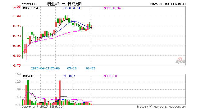 6月3日,截止午间收盘,创业板人工智能ETF国泰(159388)涨0.53%,报0.946元,成交额546.29万元。创业板人工智能ETF国泰(159388)重仓股方面,新易盛截止午盘跌1.33%,中际旭创跌1.34%,软通动力涨3.97%,润泽科技跌0.75%,天孚通信涨0.28%,网宿科技涨0.19%,深信服涨2.15%,全志科技涨1.28%,光环新网跌0.38%,北京君正涨0.95%。