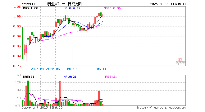 6月11日,截止午间收盘,创业板人工智能ETF国泰(159388)涨0.10%,报1.001元,成交额694.42万元。创业板人工智能ETF国泰(159388)重仓股方面,新易盛截止午盘跌0.30%,中际旭创涨0.38%,软通动力涨0.11%,润泽科技跌0.71%,天孚通信涨0.58%,网宿科技涨0.10%,深信服跌1.05%,全志科技涨1.73%,光环新网跌0.81%,北京君正涨0.71%。