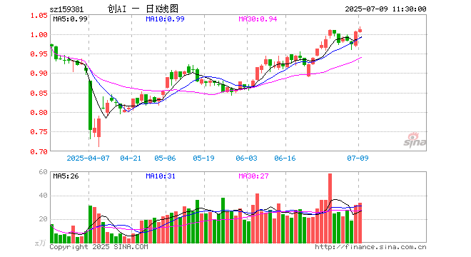 7月9日,截止午间收盘,创业板人工智能ETF华夏(159381)涨0.50%,报1.011元,成交额3435.33万元。创业板人工智能ETF华夏(159381)重仓股方面,新易盛截止午盘涨1.04%,中际旭创涨1.23%,软通动力涨0.66%,润泽科技跌2.57%,天孚通信涨1.91%,网宿科技跌0.56%,光环新网跌1.26%,全志科技跌0.99%,深信服涨0.18%,北京君正跌0.80%。