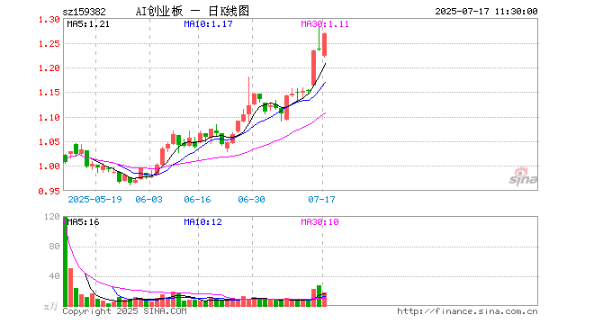 7月17日,截止午间收盘,创业板人工智能ETF南方(159382)涨2.59%,报1.269元,成交额2196.29万元。创业板人工智能ETF南方(159382)重仓股方面,新易盛截止午盘涨6.40%,中际旭创涨1.53%,软通动力涨8.60%,润泽科技跌0.36%,网宿科技涨0.85%,全志科技涨0.67%,深信服跌0.33%,天孚通信涨1.92%,北京君正涨1.23%,光环新网涨1.26%。