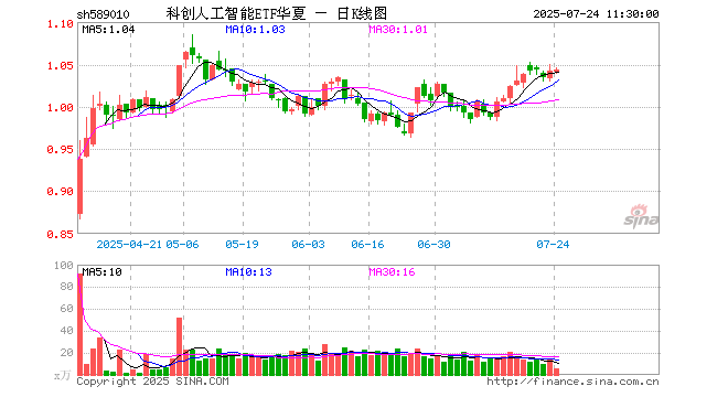 7月24日,截止午间收盘,科创人工智能ETF华夏(589010)涨0.19%,报1.044元,成交额569.70万元。科创人工智能ETF华夏(589010)重仓股方面,寒武纪截止午盘涨0.63%,澜起科技跌0.42%,金山办公跌0.51%,芯原股份涨0.53%,石头科技跌0.74%,恒玄科技涨0.43%,晶晨股份涨0.88%,复旦微电涨2.61%,中科星图涨1.53%,道通科技跌0.96%。