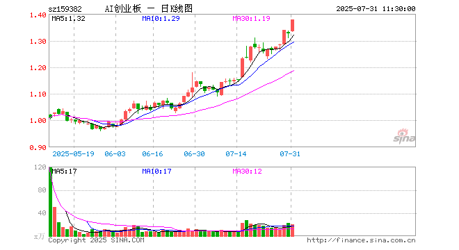 7月31日,截止午间收盘,创业板人工智能ETF南方(159382)涨4.00%,报1.378元,成交额2753.12万元。创业板人工智能ETF南方(159382)重仓股方面,中际旭创截止午盘涨8.07%,新易盛涨4.76%,天孚通信涨10.51%,软通动力涨0.71%,润泽科技涨4.73%,全志科技涨0.57%,景嘉微涨1.92%,深信服涨8.73%,北京君正跌0.22%,网宿科技涨4.30%。