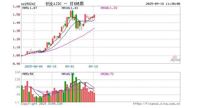 9月18日,截止午间收盘,创业板人工智能ETF大成(159242)涨1.70%,报1.492元,成交额7132.31万元。创业板人工智能ETF大成(159242)重仓股方面,新易盛截止午盘涨1.29%,中际旭创涨1.69%,天孚通信涨1.61%,软通动力涨1.80%,润泽科技涨2.35%,景嘉微涨1.69%,全志科技涨3.99%,深信服涨3.75%,网宿科技涨2.09%,光环新网涨1.66%。