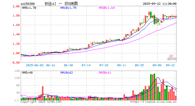 9月22日,截止午间收盘,创业板人工智能ETF国泰(159388)涨0.28%,报1.783元,成交额4061.25万元。创业板人工智能ETF国泰(159388)重仓股方面,中际旭创截止午盘跌1.30%,新易盛跌2.35%,天孚通信跌0.02%,软通动力跌0.16%,润泽科技涨1.36%,全志科技涨2.40%,景嘉微涨3.49%,深信服涨0.57%,北京君正涨1.40%,网宿科技跌0.26%。