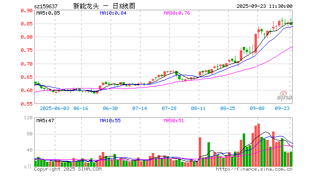9月23日,截止午间收盘,新能源车龙头ETF(159637)跌0.94%,报0.843元,成交额3082.46万元。新能源车龙头ETF(159637)重仓股方面,宁德时代截止午盘跌2.17%,汇川技术跌0.89%,比亚迪跌2.82%,长安汽车跌1.15%,三花智控涨2.30%,亿纬锂能涨1.42%,华友钴业跌2.62%,赣锋锂业跌0.80%,国轩高科跌1.88%,天齐锂业跌2.71%。