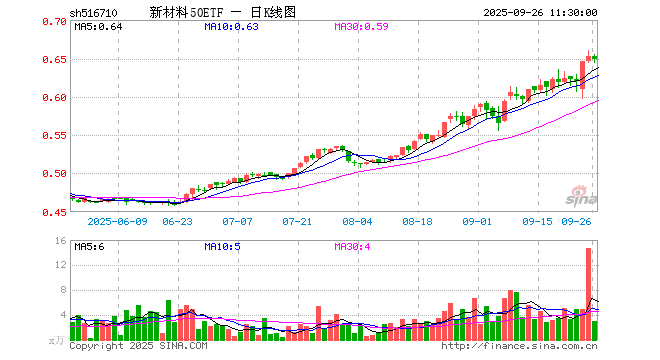 新材料50ETF(516710)业绩比较基准为中证新材料主题指数收益率,管理人为华夏基金管理有限公司,基金经理为司帆,成立(2021-08-04)以来回报为-34.92%,近一个月回报为13.62%。