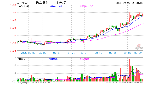 汽车零件ETF(159306)业绩比较基准为中证汽车零部件主题指数收益率,管理人为平安基金管理有限公司,基金经理为钱晶,成立(2024-04-29)以来回报为44.85%,近一个月回报为11.84%。