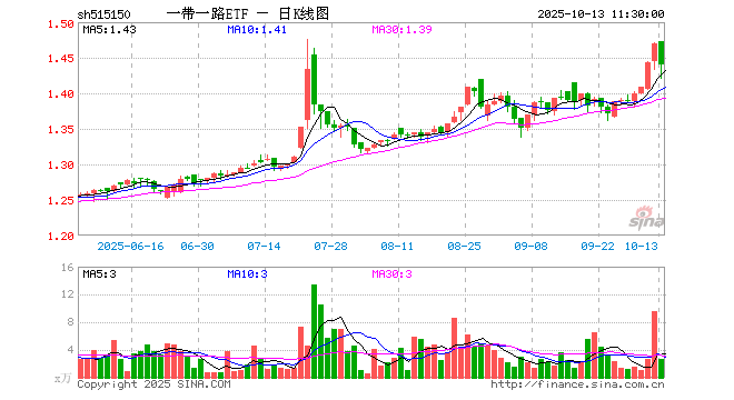 一带一路ETF(515150)业绩比较基准为中证国企一带一路指数收益率,管理人为富国基金管理有限公司,基金经理为殷钦怡、汤杰强,成立(2019-11-06)以来回报为45.00%,近一个月回报为5.32%。