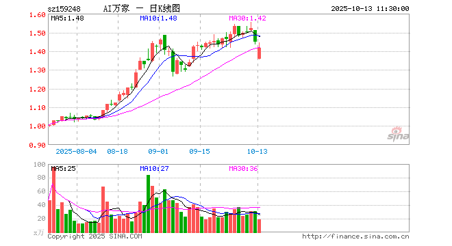 10月13日,截止午间收盘,人工智能ETF基金(159248)跌2.35%,报1.415元,成交额2679.63万元。人工智能ETF基金(159248)重仓股方面,新易盛截止午盘跌4.68%,中际旭创跌6.76%,寒武纪跌0.08%,科大讯飞跌1.73%,豪威集团跌3.42%,海康威视跌3.95%,中科曙光跌0.66%,澜起科技跌1.97%,金山办公涨7.37%,浪潮信息跌0.55%。