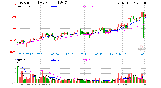 11月5日,截止午间收盘,石油天然气ETF(159588)涨0.38%,报1.062元,成交额458.86万元。石油天然气ETF(159588)重仓股方面,中国石油截止午盘跌0.31%,中国石化跌0.18%,中国海油跌0.89%,杰瑞股份跌0.23%,广汇能源涨0.38%,招商轮船涨0.12%,中远海能跌0.48%,新奥股份跌0.10%,海油工程涨0.90%,大众公用跌2.71%。