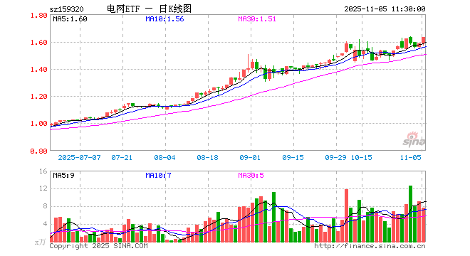 11月5日,截止午间收盘,电网ETF(159320)涨2.78%,报1.629元,成交额1217.34万元。电网ETF(159320)重仓股方面,新易盛截止午盘跌1.21%,国电南瑞涨2.32%,特变电工涨9.99%,思源电气涨2.11%,中天科技跌0.24%,亨通光电涨0.28%,东方电缆涨2.40%,宏发股份涨10.00%,浙江荣泰涨3.56%,特锐德涨2.91%。