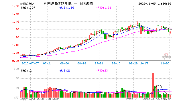 科创综指ETF景顺(589890)业绩比较基准为上证科创板综合价格指数收益率,管理人为景顺长城基金管理有限公司,基金经理为金璜、龚丽丽,成立(2025-02-26)以来回报为27.87%,近一个月回报为-5.90%。