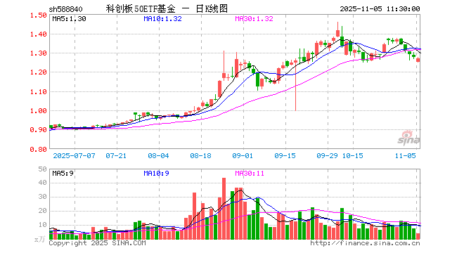 11月5日,截止午间收盘,科创板50ETF基金(588840)跌0.55%,报1.270元,成交额482.73万元。科创板50ETF基金(588840)重仓股方面,海光信息截止午盘跌2.10%,中芯国际跌1.04%,寒武纪跌1.01%,澜起科技跌1.98%,中微公司涨1.22%,联影医疗涨1.50%,金山办公跌1.95%,芯原股份跌1.57%,石头科技涨1.66%,沪硅产业跌1.22%。