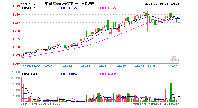 11月5日,截止午间收盘,中证500成长ETF(562340)跌0.71%,报1.251元,成交额2.16万元。中证500成长ETF(562340)重仓股方面,华工科技截止午盘跌2.26%,恺英网络跌2.51%,东吴证券涨0.00%,恒玄科技跌1.64%,科达利跌2.15%,水晶光电跌1.06%,天山铝业跌2.63%,春风动力跌0.70%,杰瑞股份跌0.23%,顺络电子跌0.32%。