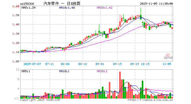 11月5日,截止午间收盘,汽车零件ETF(159306)跌0.15%,报1.366元,成交额77.51万元。汽车零件ETF(159306)重仓股方面,汇川技术截止午盘跌0.08%,福耀玻璃涨0.96%,三花智控跌1.92%,拓普集团跌0.61%,德赛西威跌0.07%,长盈精密跌1.39%,赛轮轮胎涨0.83%,银轮股份涨0.34%,双环传动跌1.42%,华域汽车跌0.90%。