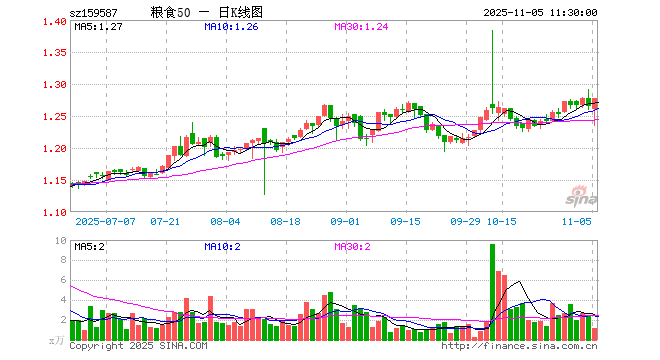 11月5日,截止午间收盘,粮食ETF广发(159587)涨0.95%,报1.277元,成交额145.66万元。粮食ETF广发(159587)重仓股方面,大北农截止午盘涨0.49%,隆平高科涨0.51%,北大荒涨0.21%,荃银高科涨0.90%,藏格矿业跌0.80%,盐湖股份涨0.54%,苏垦农发涨0.21%,亚盛集团涨0.00%,农发种业涨0.93%,云天化跌0.48%。