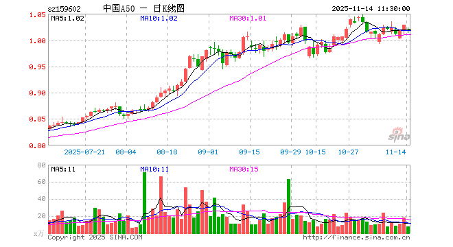 11月14日,截止午间收盘,中国A50ETF(159602)跌0.88%,报1.019元,成交额816.73万元。中国A50ETF(159602)重仓股方面,宁德时代截止午盘跌2.14%,紫金矿业跌1.07%,工业富联跌4.15%,贵州茅台跌0.26%,海光信息跌2.82%,寒武纪跌2.79%,比亚迪跌1.21%,恒瑞医药跌0.30%,立讯精密跌0.14%,中际旭创跌2.54%。