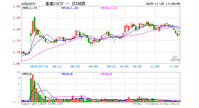 11月20日,截止午间收盘,基建50ETF(516970)涨0.60%,报1.178元,成交额1941.70万元。基建50ETF(516970)重仓股方面,中国中铁截止午盘涨0.90%,中国建筑涨1.13%,中国电建涨0.72%,中国铁建涨0.51%,中国能建涨0.84%,中国交建涨0.58%,中国中冶涨0.61%,中国化学涨0.78%,金诚信涨0.92%,四川路桥涨0.11%。