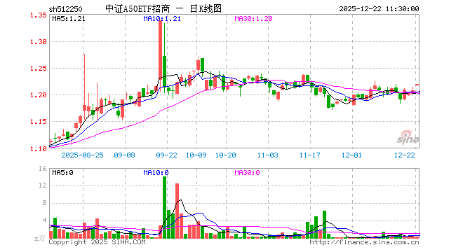 12月22日,截止午间收盘,中证A50ETF招商(512250)涨0.91%,报1.219元,成交额34.45万元。中证A50ETF招商(512250)重仓股方面,宁德时代截止午盘跌0.91%,贵州茅台涨0.09%,中国平安跌0.45%,招商银行跌0.17%,紫金矿业涨4.24%,美的集团跌0.31%,长江电力跌1.18%,立讯精密涨1.57%,恒瑞医药涨0.18%,中芯国际涨6.49%。