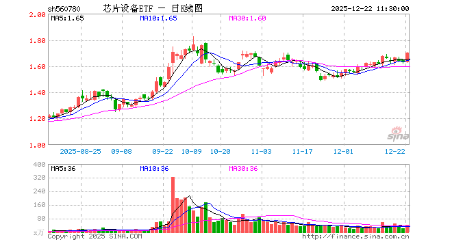12月22日,截止午间收盘,芯片设备ETF(560780)涨4.55%,报1.700元,成交额6895.95万元。芯片设备ETF(560780)重仓股方面,北方华创截止午盘涨3.71%,长川科技涨7.74%,沪硅产业涨3.17%,华海清科涨3.73%,拓荆科技涨6.98%,安集科技涨3.91%,南大光电涨5.64%,芯源微涨4.84%,中科飞测涨4.55%。