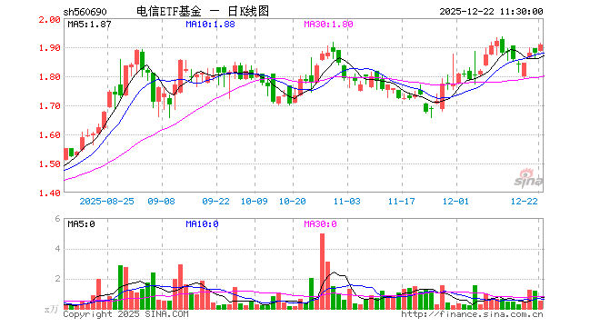 12月22日,截止午间收盘,电信ETF基金(560690)涨1.44%,报1.908元,成交额99.42万元。电信ETF基金(560690)重仓股方面,中际旭创截止午盘涨5.60%,新易盛涨6.19%,中国联通跌0.39%,中国移动跌1.04%,中国电信跌1.62%,银之杰涨1.88%,中国卫通涨2.85%,中兴通讯涨1.65%,天孚通信涨3.38%,紫光股份涨2.01%。