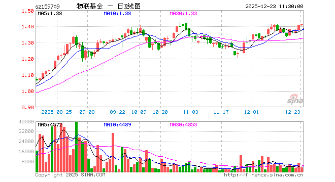 12月23日,截止午间收盘,物联网ETF工银(159709)涨0.21%,报1.410元,成交额46.42万元。物联网ETF工银(159709)重仓股方面,中际旭创截止午盘涨0.17%,新易盛跌0.34%,美的集团涨1.10%,北方华创涨4.72%,汇川技术涨0.48%,中兴通讯跌0.32%,海康威视涨0.45%,科大讯飞跌0.75%,歌尔股份跌0.85%,华工科技涨0.14%。