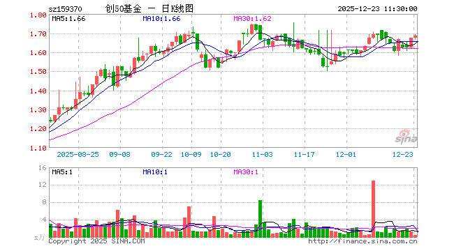 12月23日,截止午间收盘,创50ETF工银(159370)涨0.78%,报1.686元,成交额61.26万元。创50ETF工银(159370)重仓股方面,宁德时代截止午盘涨1.93%,中际旭创涨0.17%,东方财富涨0.26%,新易盛跌0.34%,阳光电源涨1.04%,胜宏科技涨3.64%,汇川技术涨0.48%,迈瑞医疗跌0.48%,亿纬锂能涨3.87%,同花顺涨0.20%。