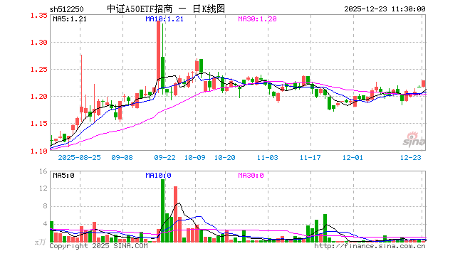 12月23日,截止午间收盘,中证A50ETF招商(512250)涨0.99%,报1.228元,成交额1.69万元。中证A50ETF招商(512250)重仓股方面,宁德时代截止午盘涨1.93%,贵州茅台跌0.02%,中国平安涨1.78%,招商银行涨0.31%,紫金矿业涨0.61%,美的集团涨1.10%,长江电力涨0.40%,立讯精密涨1.20%,恒瑞医药涨1.43%,中芯国际跌0.36%。