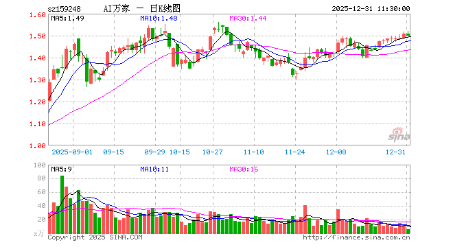 12月31日,截止午间收盘,人工智能ETF基金(159248)跌0.53%,报1.500元,成交额770.55万元。人工智能ETF基金(159248)重仓股方面,新易盛截止午盘跌3.14%,中际旭创跌2.80%,寒武纪跌2.60%,澜起科技跌1.13%,中科曙光涨0.32%,科大讯飞涨2.84%,豪威集团跌0.46%,海康威视跌0.57%,浪潮信息跌1.24%,金山办公涨1.53%。