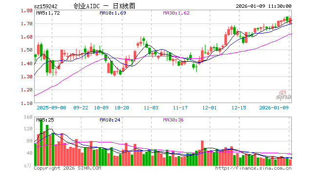 1月9日,截止午间收盘,创业板人工智能ETF大成(159242)涨1.23%,报1.735元,成交额3234.95万元。创业板人工智能ETF大成(159242)重仓股方面,中际旭创截止午盘跌1.66%,新易盛跌2.23%,天孚通信涨1.84%,协创数据跌3.44%,软通动力涨0.45%,全志科技涨0.57%,深信服涨1.76%,北京君正跌3.30%,中科创达涨2.21%,景嘉微跌0.03%。