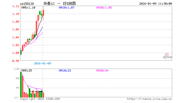 1月9日,截止午间收盘,科创创业人工智能ETF华泰柏瑞(159139)涨1.28%,报1.109元,成交额2191.58万元。科创创业人工智能ETF华泰柏瑞(159139)重仓股方面,新易盛截止午盘跌2.23%,中际旭创跌1.66%,澜起科技跌0.06%,寒武纪跌0.37%,金山办公涨1.67%,芯原股份涨4.09%,润泽科技涨15.32%,昆仑万维涨5.73%,协创数据跌3.44%,北京君正跌3.30%。